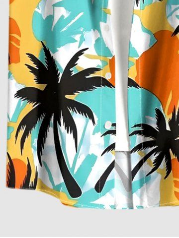 Plus Size Coconut Tree Colorblock Print Buttons Pocket Hawaii Shirt For Men - Multi - 4xl