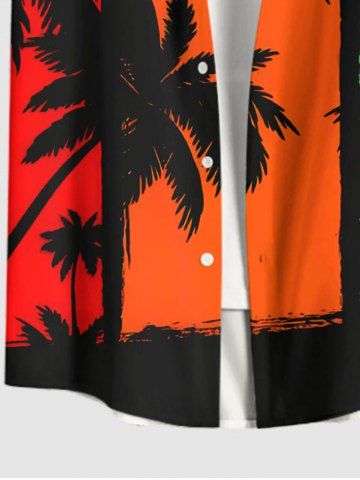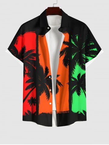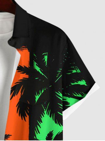 Short Sleeves Shirts > Plus Size Coconut Tree Colorblock Print Hawaii Button Pocket Shirt For Men
