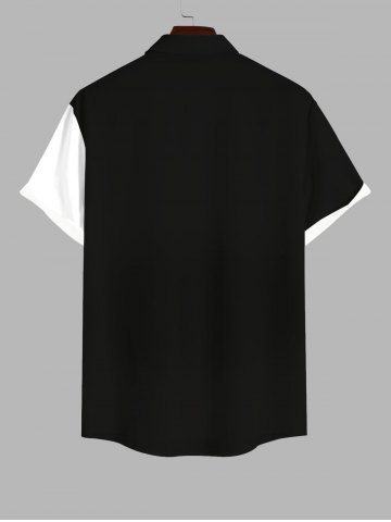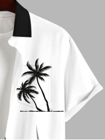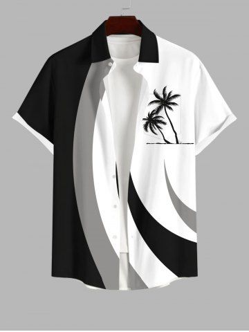 Plus Size Coconut Tree Colorblock Print Hawaii Shirt For Men - Black - L