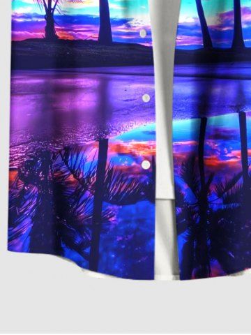 Short Sleeves Shirts > Plus Size Coconut Tree Colorful Cloud Seascape Print Buttons Pocket Hawaii Shirt For Men