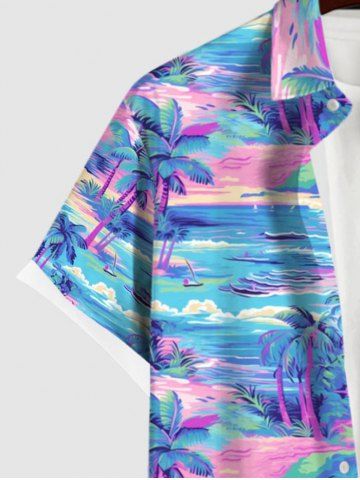 Short Sleeves Shirts > Plus Size Coconut Tree Colorful Sea Waves Print Buttons Pocket Hawaii Shirt For Men