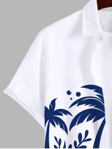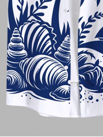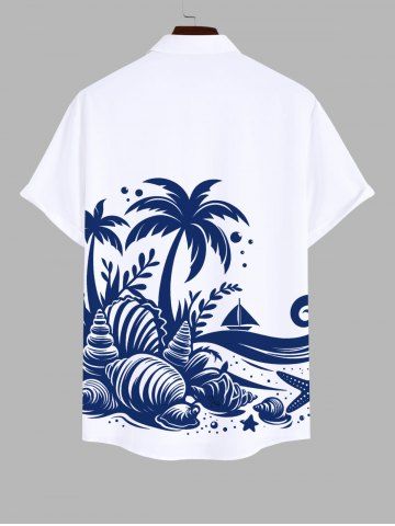 Plus Size Coconut Tree Conch Sailboat Sea Print Buttons Pocket Hawaii Shirt For Men - White - Xl