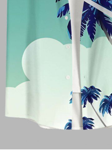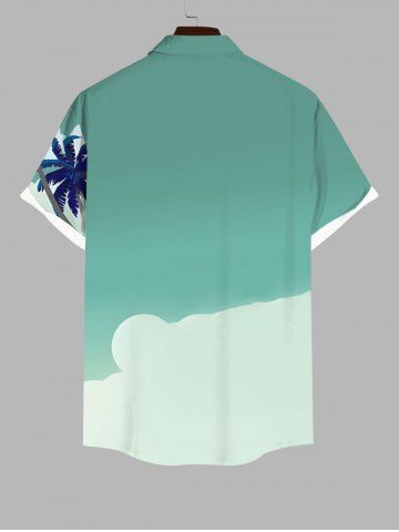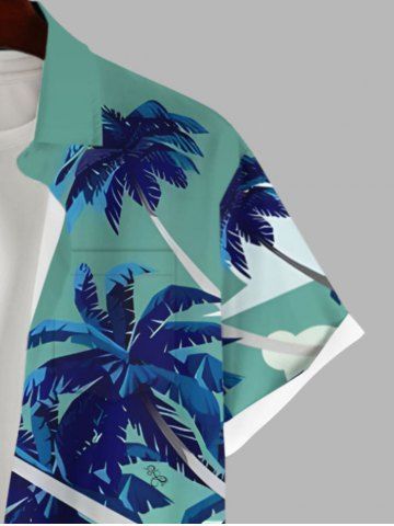 Plus Size Coconut Tree Contrast Colorblock Print Hawaii Button Pocket Shirt For Men - Green - 4xl