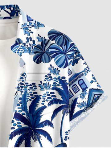 Plus Size Coconut Tree Courtyard Path Blue and White Porcelain Style Print Hawaii Shirt For Men - Blue - 5xl