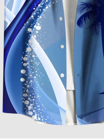 Plus Size Coconut Tree Curve Colorblock Print Buttons Pocket Hawaii Shirt For Men - Blue - 6xl