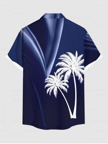 Plus Size Coconut Tree Curve Light Beam Print Hawaii Button Pocket Shirt For Men - Deep Blue - S