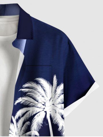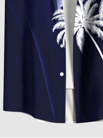 Plus Size Coconut Tree Curve Light Beam Print Hawaii Button Pocket Shirt For Men - Deep Blue - Xl