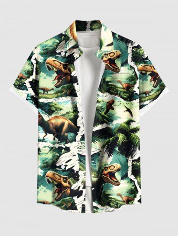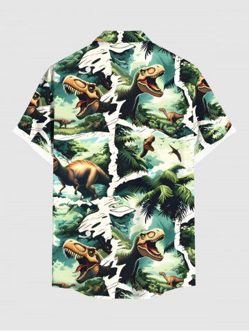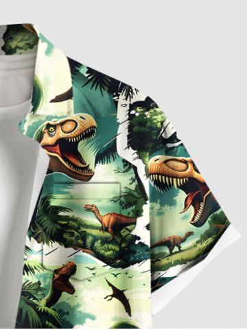 Plus Size Coconut Tree Dinosaur Forest Print Hawaii Button Pocket Shirt For Men - Green - Xl