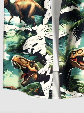 Plus Size Coconut Tree Dinosaur Forest Print Hawaii Button Pocket Shirt For Men - Green - 6xl