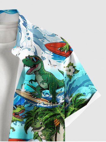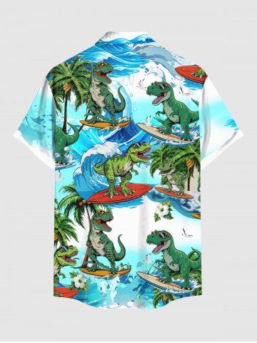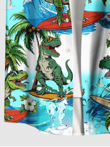 Short Sleeves Shirts > Plus Size Coconut Tree Dinosaur Sea Waves Print Hawaii Button Pocket Shirt For Men
