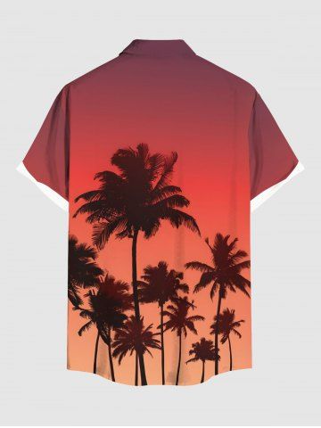 Plus Size Coconut Tree Dip Dye Ombre Print Hawaii Button Pocket Shirt For Men - Orange - Xl