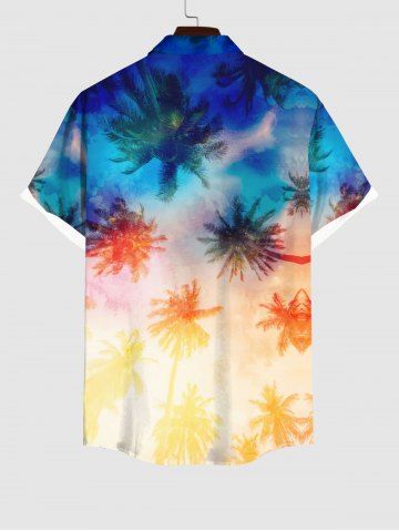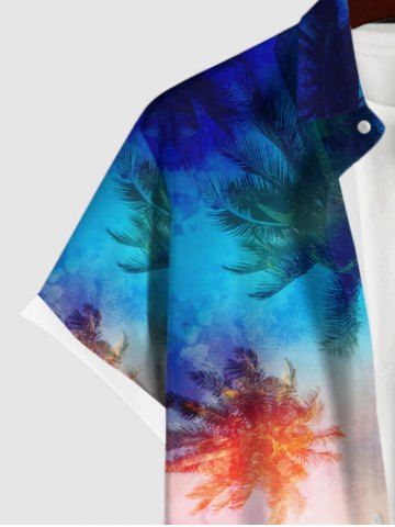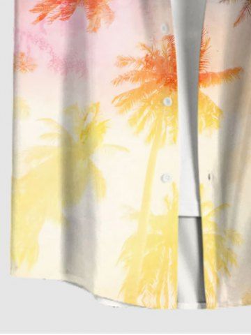 Plus Size Coconut Tree Dip Dye Print Buttons Pocket Hawaii Shirt For Men - Multi-a - L