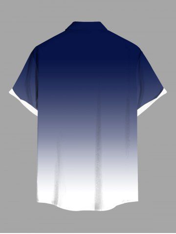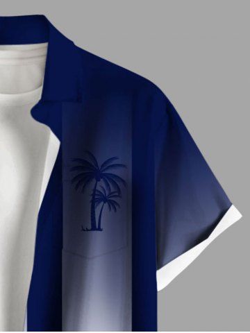Plus Size Coconut Tree Dip Dye Print Hawaii Button Pocket Shirt For Men - Blue - M