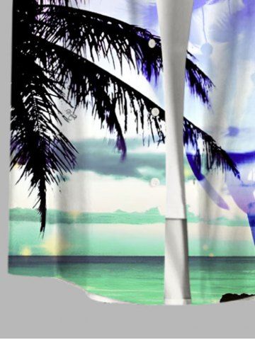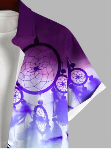 Plus Size Coconut Tree Dreamcatcher Feather Sea Print Hawaii Ombre Button Pocket Shirt For Men - Multi-a - 4xl