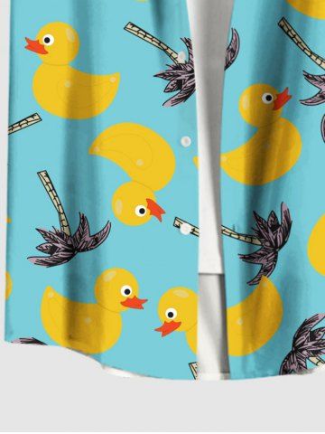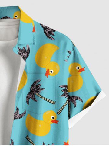Short Sleeves Shirts > Plus Size Coconut Tree Ducks Print Buttons Pocket Hawaii Shirt For Men