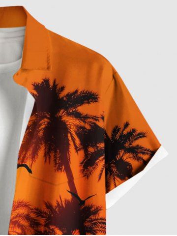 Short Sleeves Shirts > Plus Size Coconut Tree Dusk Sunset Print Hawaii Button Pocket Shirt For Men