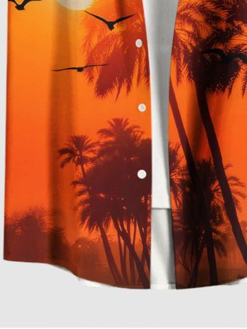 Plus Size Coconut Tree Dusk Sunset Print Hawaii Button Pocket Shirt For Men - Dark Orange - 2xl