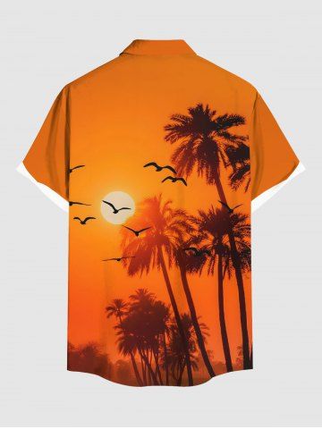 Plus Size Coconut Tree Dusk Sunset Print Hawaii Button Pocket Shirt For Men - Dark Orange - 6xl