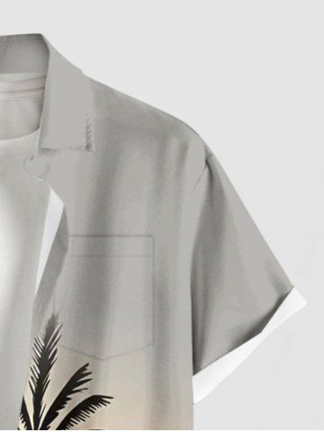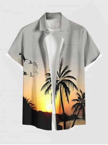Plus Size Coconut Tree Dusk Sunset Print Hawaii Button Pocket Shirt For Men - Light Gray - 6xl