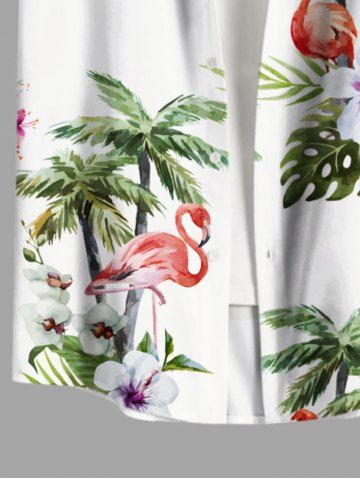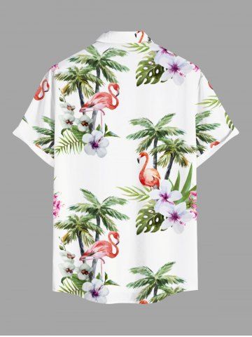 Plus Size Coconut Tree Flamingo Flowers Leaf Print Buttons Pocket Hawaii Shirt For Men - White - 6xl