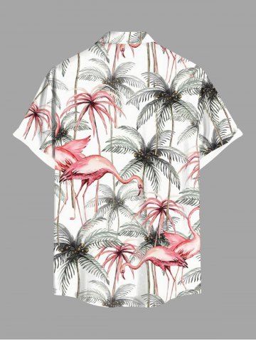Plus Size Coconut Tree Flamingo Print Hawaii Buttons Pocket Shirt For Men - White - M