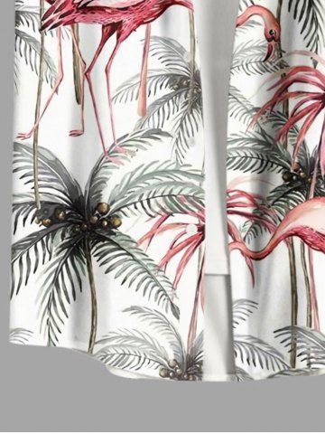 Plus Size Coconut Tree Flamingo Print Hawaii Buttons Pocket Shirt For Men - White - 2xl