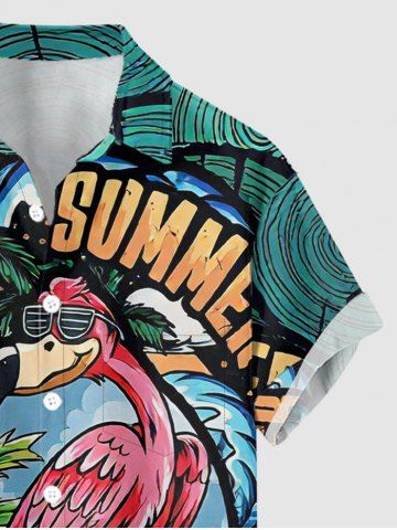 Short Sleeves Shirts > Plus Size Coconut Tree Flamingo Sea Waves Print Hawaii Button Pocket Shirt For Men