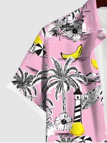 Plus Size Coconut Tree Floral Banana Pineapple Print Button Pocket Hawaii Shirt For Men - Light Pink - 4xl