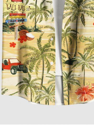 Plus Size Coconut Tree Floral Beach Car Print Hawaii Button Pocket Shirt For Men - Yellow - 6xl