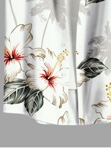 Short Sleeves Shirts > Men's Plus Size Coconut Tree Hibiscus Flower Leaf Print Hawaii Button Pocket Shirt