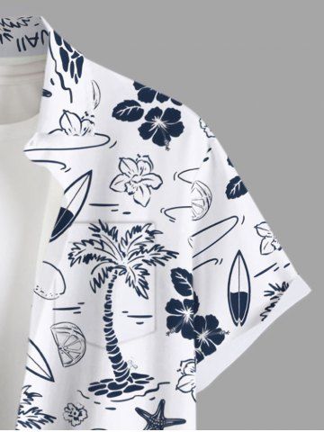 Plus Size Coconut Tree Floral Lemon Starfish Sailboat Print Hawaii Button Pocket Shirt For Men - White - L