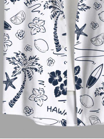Plus Size Coconut Tree Floral Lemon Starfish Sailboat Print Hawaii Button Pocket Shirt For Men - White - 3xl
