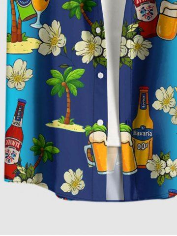Plus Size Coconut Tree Flower Beer Ombre Print Hawaii Button Pocket Shirt For Men - Deep Blue - 6xl