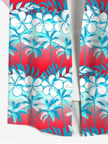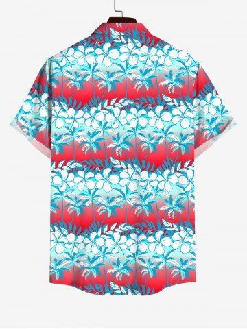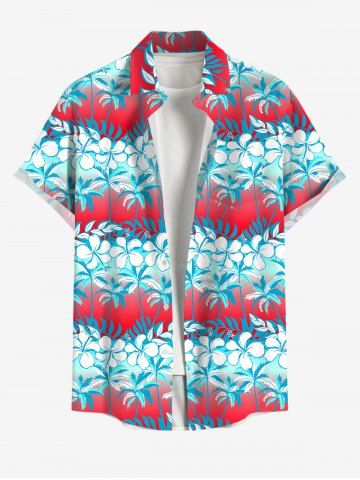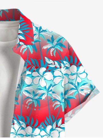 Short Sleeves Shirts > Plus Size Coconut Tree Flower Colorblock Print Buttons Pocket Hawaii Shirt For Men