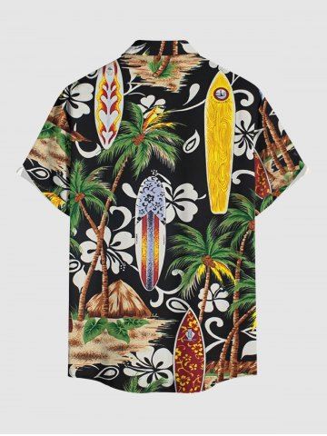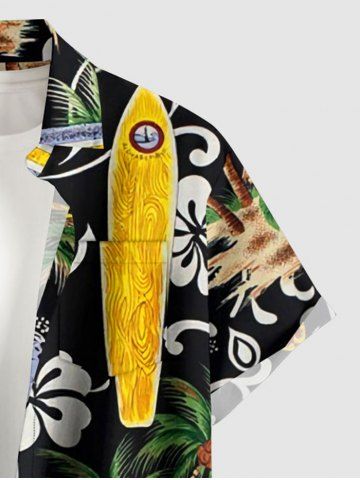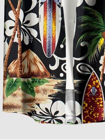 Plus Size Coconut Tree Flower Ethnic Pattern Print Hawaii Button Pocket Shirt For Men - Black - L