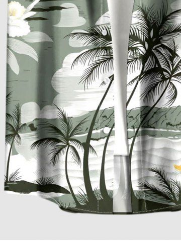 Plus Size Coconut Tree Flower Sun Print Buttons Pocket Hawaii Shirt For Men - Light Green - 3xl
