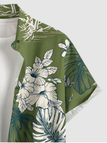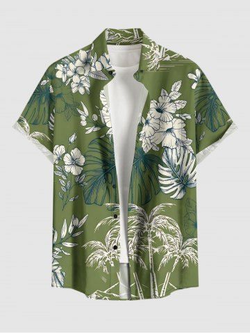 Plus Size Coconut Tree Flower Tropical Leaf Print Buttons Pocket Hawaii Shirt For Men - Plant Green - Xl
