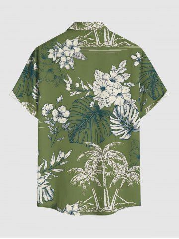 Plus Size Coconut Tree Flower Tropical Leaf Print Buttons Pocket Hawaii Shirt For Men - Plant Green - 6xl