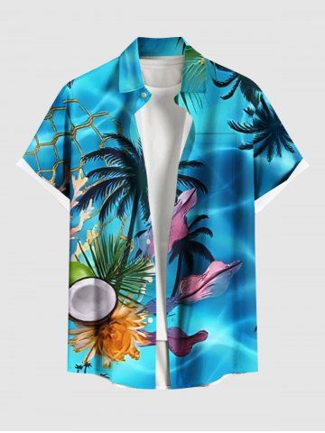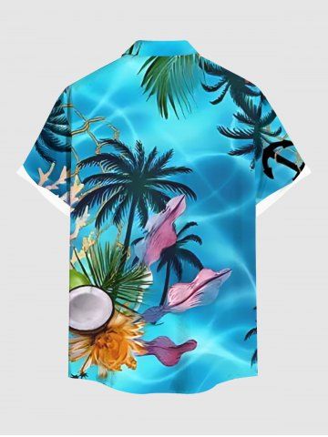 Plus Size Coconut Tree Flowers Leaf Print Buttons Pocket Hawaii Shirt For Men - Sky Blue - 2xl