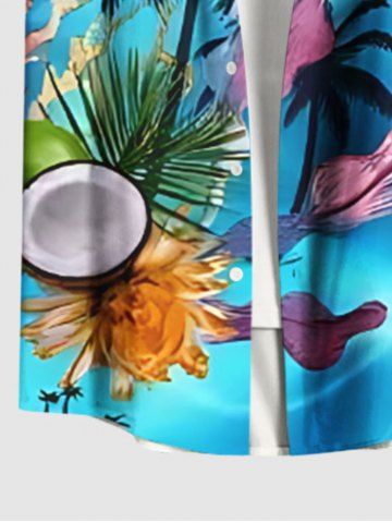 Plus Size Coconut Tree Flowers Leaf Print Buttons Pocket Hawaii Shirt For Men - Sky Blue - 3xl