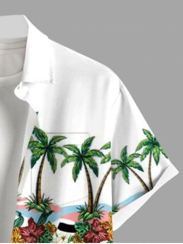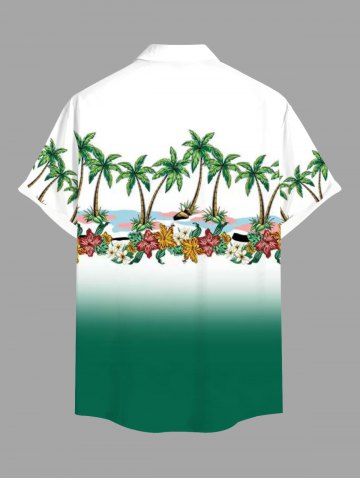 Plus Size Coconut Tree Flowers Ombre Colorblock Printed Buttons Pocket Hawaii Shirt For Men - Green - 2xl