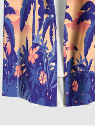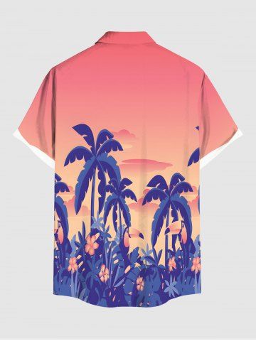 Plus Size Coconut Tree Flowers Ombre Print Buttons Pocket Hawaii Shirt For Men - Light Pink - 3xl