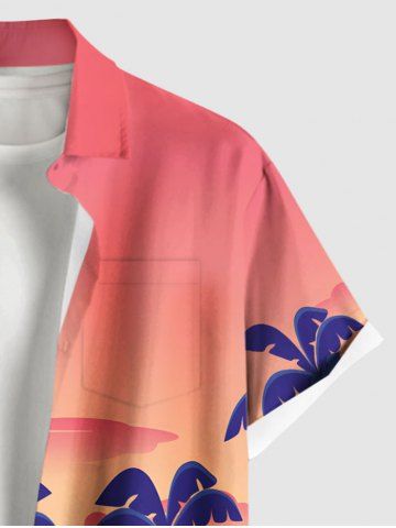 Plus Size Coconut Tree Flowers Ombre Print Buttons Pocket Hawaii Shirt For Men - Light Pink - 6xl