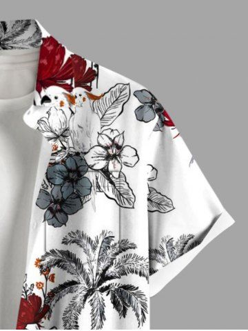 Plus Size Coconut Tree Flowers Parrot Print Buttons Pocket Hawaii Shirt For Men - White - 6xl