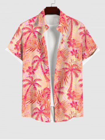 Plus Size Coconut Tree Flowers Print Buttons Pocket Hawaii Shirt For Men - Red - M