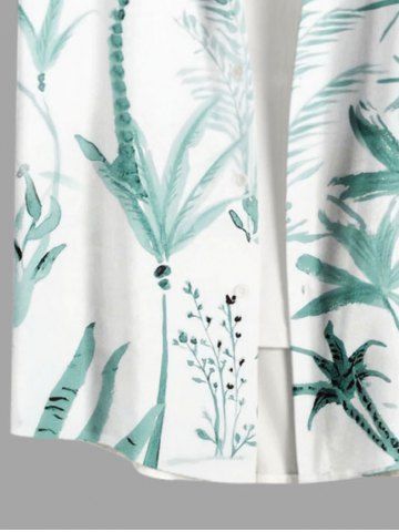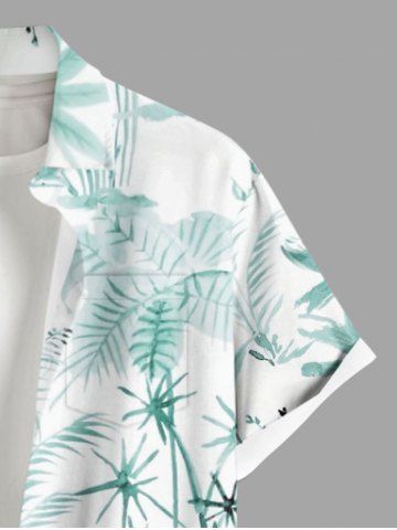 Plus Size Coconut Tree Flowers Print Buttons Pocket Hawaii Shirt For Men - White - S