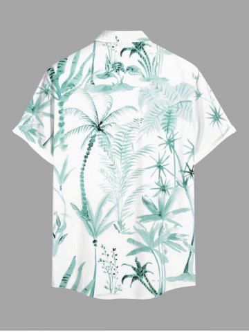 Plus Size Coconut Tree Flowers Print Buttons Pocket Hawaii Shirt For Men - White - Xl