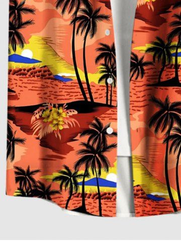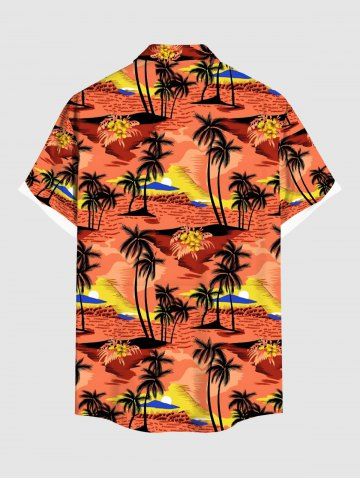 Plus Size Coconut Tree Flowers Print Buttons Pocket Hawaii Shirt For Men - Dark Orange - 3xl