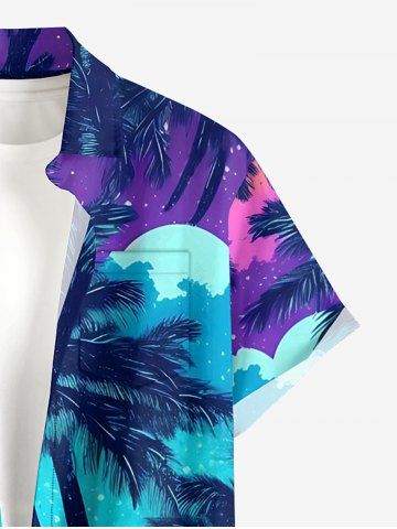 Plus Size Coconut Tree Galaxy Cloud Moon Print Hawaii Button Pocket Shirt For Men - Blue - S