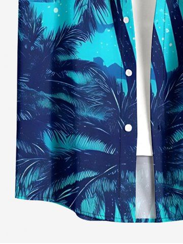 Plus Size Coconut Tree Galaxy Cloud Moon Print Hawaii Button Pocket Shirt For Men - Blue - 4xl